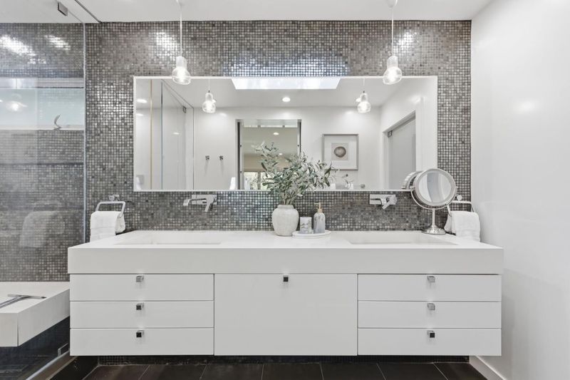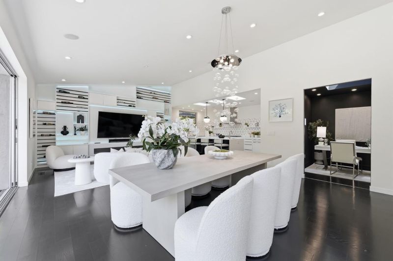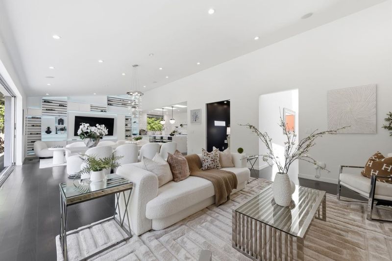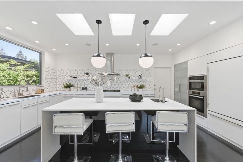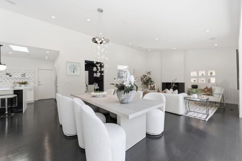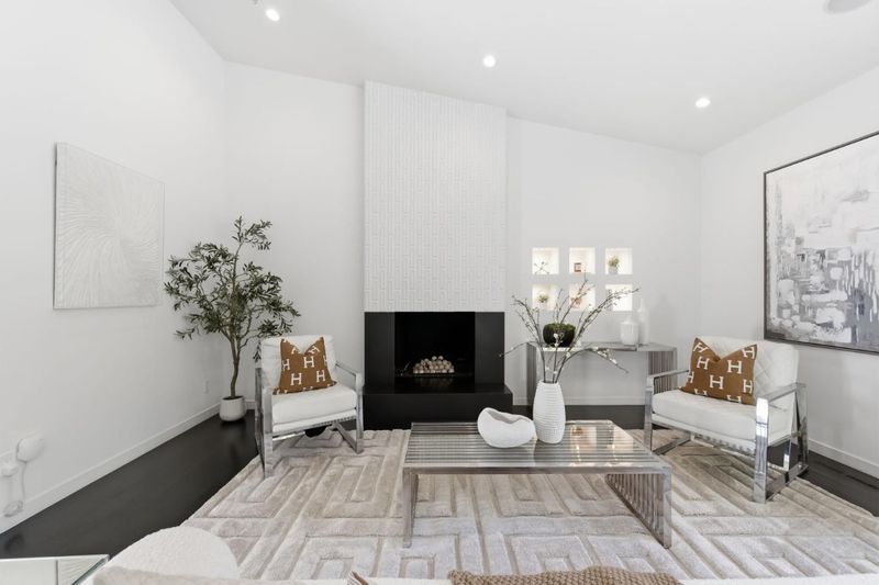 This exceptional Crescent Park home, blocks away from DownTown, pairs striking contemporary architecture with visually sophisticated, livable interiors. A glazed foyer and vivid front door, introducing lofty, light-filled spaces, leading to a spacious mudroom and a library-lined hall. The main office offers high ceilings, large window facing sculptural front yard & Murphy bed for guests. The great room boasts a fireplace wall w/ custom display niches, centers on a built-in media and wine display wall and opens through expansive retracting glass doors to the backyard. The sleek kitchen offers multiple skylights, custom cabinetry, oversized island & top of the line appliances. Beautiful dark hardwood floor throughout. Additional office off of the great rm. The spacious primary suite w/ sliding doors leads to the backyard. Spa-like bath with dual vanity, mosaic detailing, skylit ceiling & oversized glass shower w/ side jets. Three additional bedrms are each distinct and expressive, two baths finished with a designers eye for material. Fully outfitted gym, large laundry rm. Outside, the stunning pergola features a fire pit, built-in cement seatings w/ suspended lighting. In-ground lighting traces the deck. The backyard features wooden spa structure, kids playhouse and a trampoline.