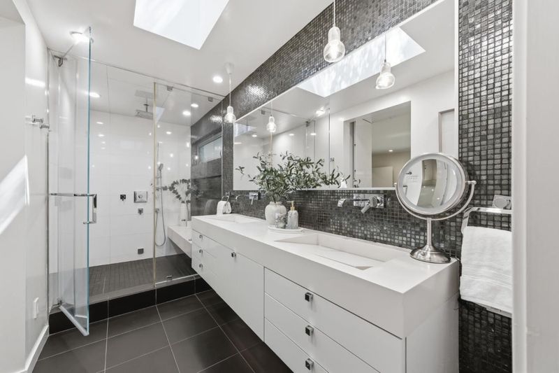 - Double Sinks, Dual Flush Toilet, Primary - Stall Shower(s), Shower and Tub, Shower over Tub - 1, Tile, Tub with Jets