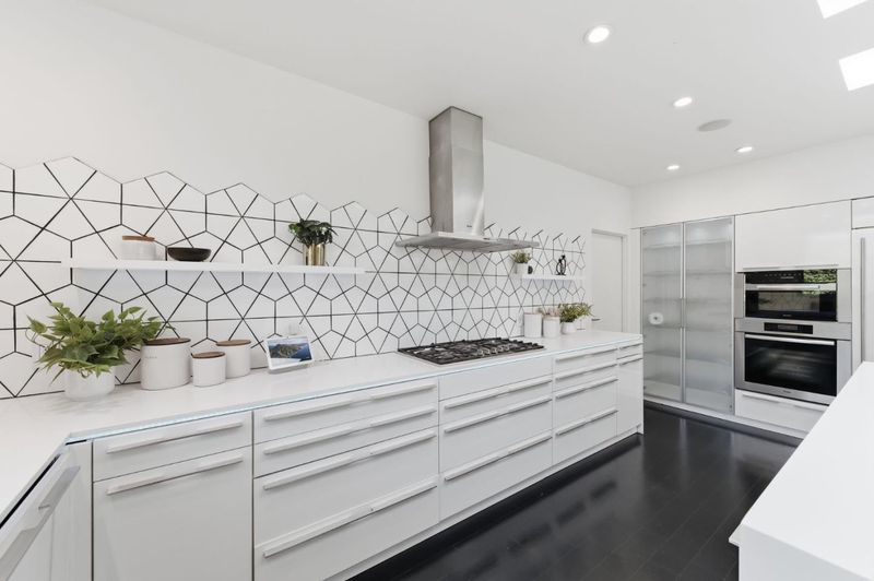 - Countertop - Quartz, Dishwasher, Freezer, Garbage Disposal, Island with Sink, Microwave, Oven - Built-In, Oven Range - Gas, Pantry, Refrigerator, Skylight, Trash Compactor