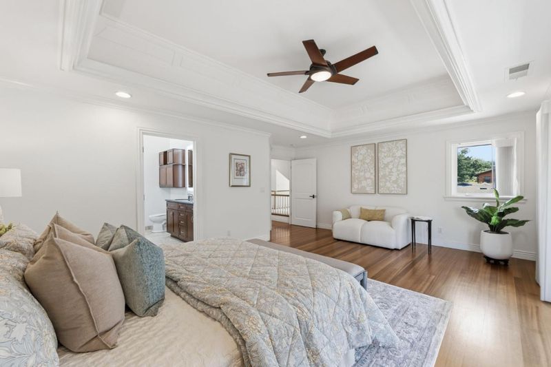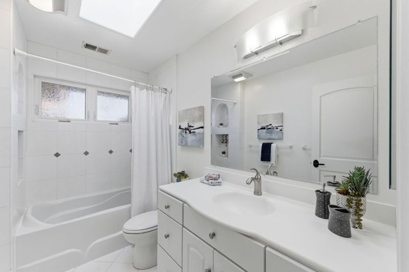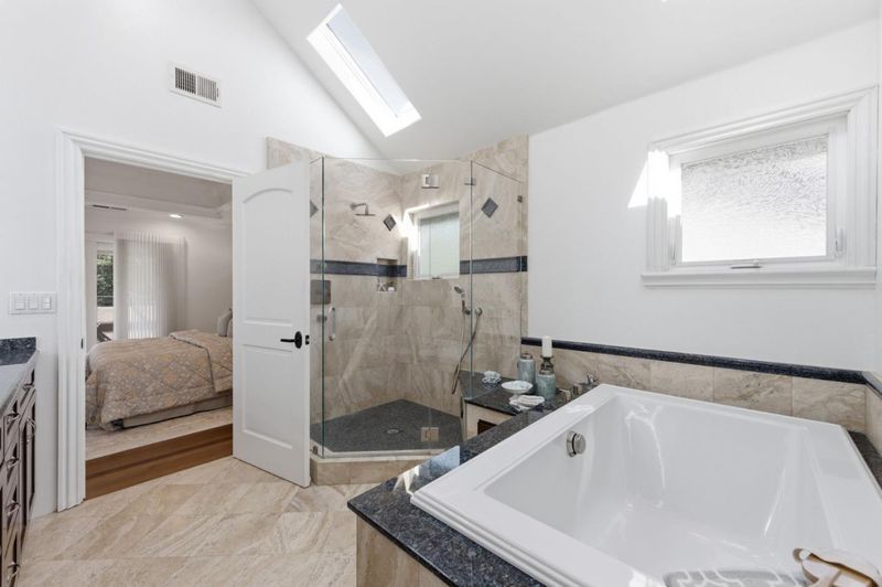 Wow! This home was beautifully remodeled & expanded in 2006 & features Brazillian cherry flooring & tile throughout, high soaring ceilings & a fantastic floorplan. The kitchen is a gourmet cook's delight with granite counters, 6 burner Thermador gas range, stainless appliances & breakfast bar with pendant lighting. The living room has floor to ceiling windows, plantation shutters & built in cabinetry for flat screen TV. The family room has french doors, gas fireplace & lots of windows to let the sun shine in! The primary suite has everything a buyer would want- walk in closet with wood organizers, a balcony with sliding glass door & ceiling fan. The bath is luxurious with a soaking tub & separate shower with bench. Granite topped vanity with lighted mirrors and skylight too! There is a bedroom and full bath on the first floor. The bath is beautifully tiled and features a tub/shower and custom vanity. There are 2 other bedrooms upstairs with ceiling fans, and a hall bath with skylight. Upstairs laundry with lots of storage cabinets. Beautiful sunroom with full wall Casita sliding door. Artifical lawn and mature trees for privacy, RV pad (reinforced concrete) and 2 nice sheds for storage. Great LG location on a cul-de-sac near Safeway, La Rinconada Park and great schools!