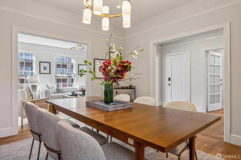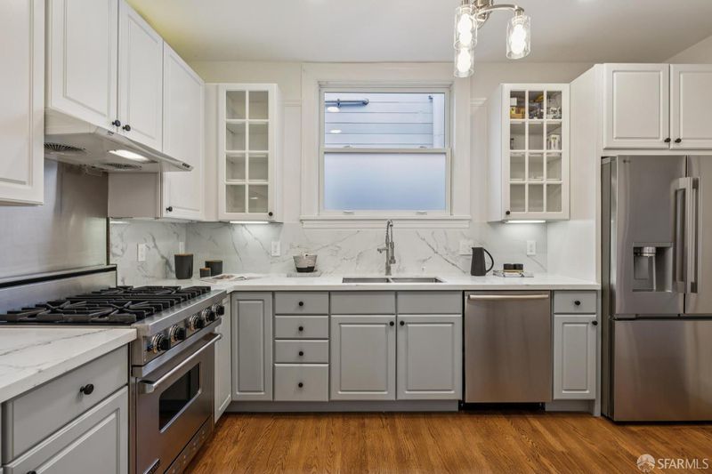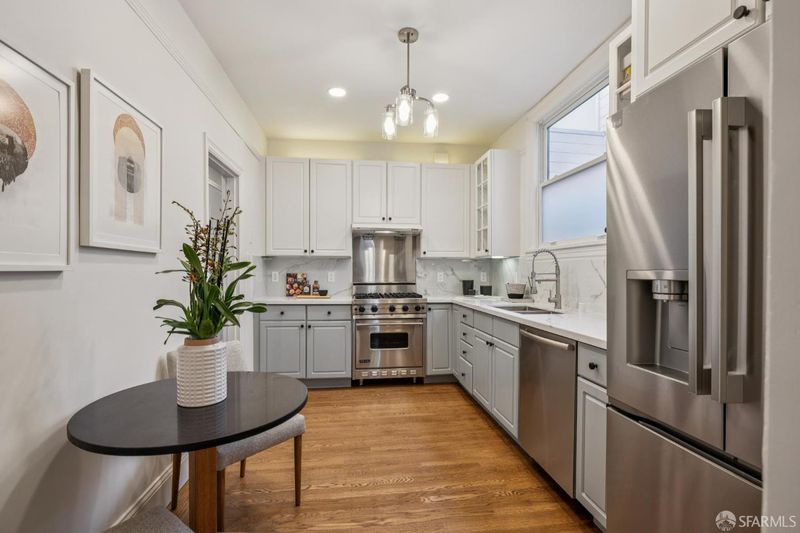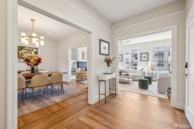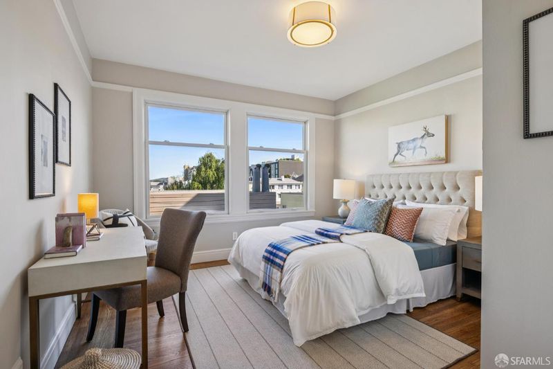 Stunning two-level Pacific Heights view condo, beautifully remodeled with extensive upgrades throughout. This bright, inviting home features a gourmet kitchen with a Viking range, Bosch dishwasher, and a brand-new LG refrigerator with ice maker and water dispenser, ideal for everyday living and entertaining. The upper level offers a spacious primary suite with a beautifully renovated bath, a generous walk-in closet, and Golden Gate Bridge views. A wall of accordion doors opens to an impressive walk-out deck, creating seamless indoor-outdoor living perfect for relaxing or hosting. The deck is also accessible via an exterior staircase. Major improvements include a fully updated electrical system, a new roof, a new deck, a new sewer line, and multiple renovated bathrooms. Additional highlights include new windows, California Closets in every bedroom, an in-unit washer/dryer combo, a dedicated washer/dryer in the garage, and two-car independent parking. Enjoy a shared patio garden and a prime location just one block from Union Street shops and dining, with easy access to tech shuttle routes.