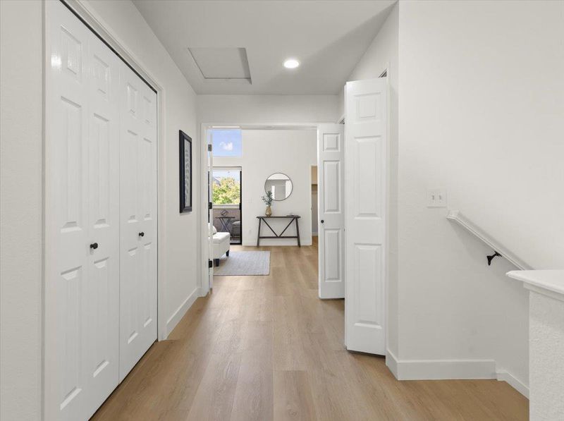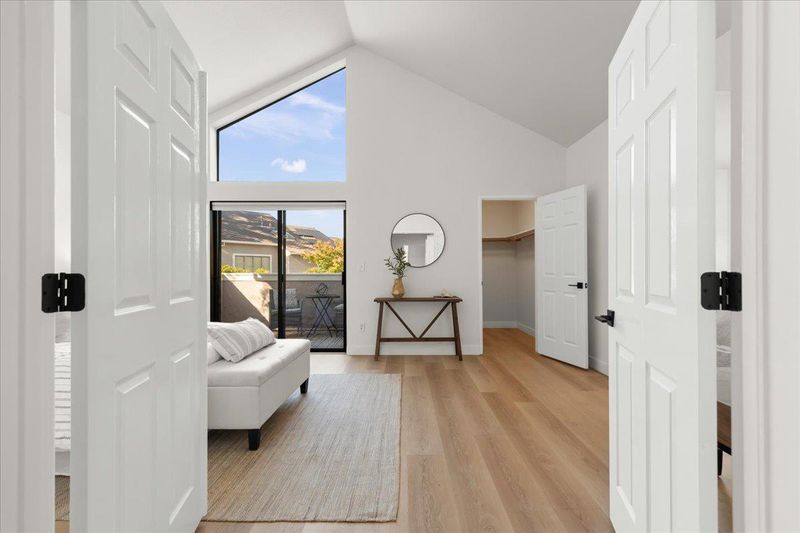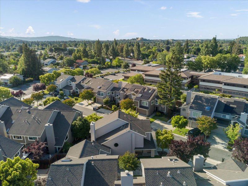 Beautifully updated end unit townhome in a prime Almaden Valley location, only attached on one side by a garage wall. Accented by modern flooring, fresh paint, and stylish fixtures throughout. This home features a convenient downstairs half bath and a remodeled kitchen with quartz countertops, stainless steel appliances, and updated cabinetry. The sunny dining and living areas flow seamlessly from the kitchen through an elegant arched entryway, highlighted by soaring ceilings and a cozy fireplace perfect for both everyday living and entertaining. Upstairs, the spacious primary suite boasts vaulted ceilings, a walk-in closet, and a well-appointed ensuite with double vanity, soaking tub, and separate stall shower. Sliding glass doors open to a private patio, creating a peaceful retreat. An in-unit washer and dryer are conveniently located upstairs. Enjoy a large backyard with a pergola, ideal for outdoor gatherings. Located in a quiet, family-friendly community near parks, library, and Almaden Golf & Country Club, and served by top-rated Almaden Valley schools: Simonds Elementary, Castillero Middle, and Leland High.