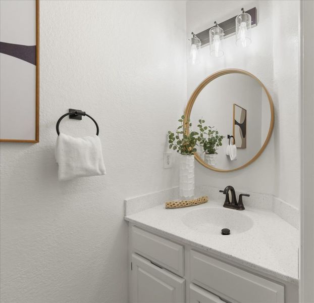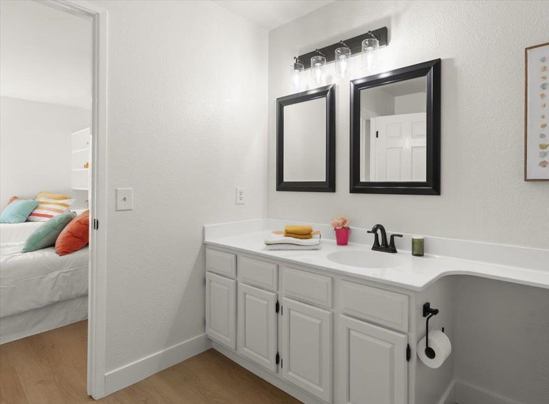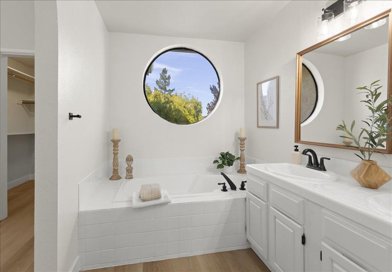 - Double Sinks, Half on Ground Floor, Primary - Stall Shower(s), Shower over Tub - 1, Tub in Primary Bedroom, Updated Bath