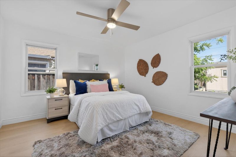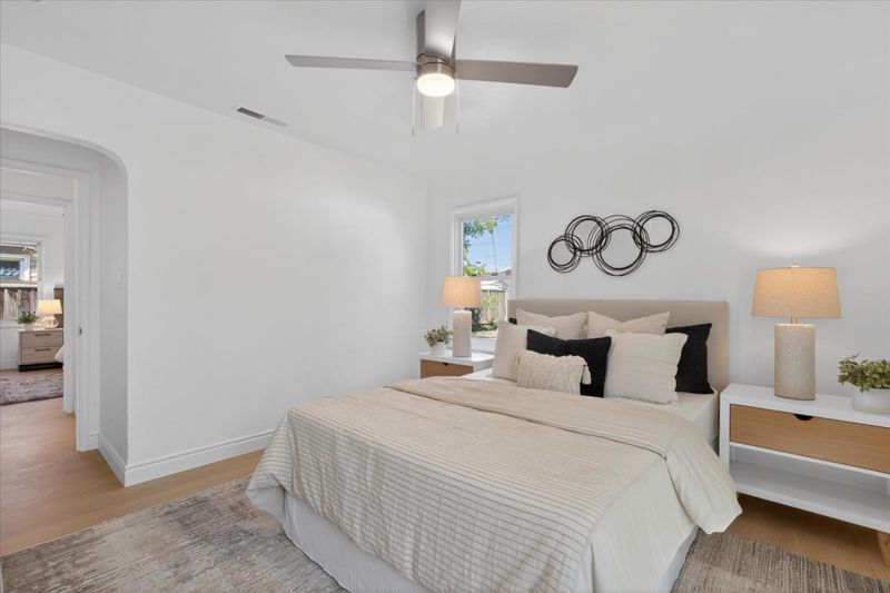 Home shows great! New luxury vinyl rigid flooring(100% waterproof and 100% virgin PVC), new 5 inch baseboard, new exterior & interior paint, new interior lights, new ceiling fans, coffered ceiling in living room & dining room, new plugs, new switches, new exterior laundry room door, new gate & more. New roof 4/25 with 10 year workmanship warranty. Bedrooms, living room, kitchen and dining room all have two windows in each room. Natural sunlight abounds The kitchen features quartz countertops, island, 5 burner gas stove, microwave, dishwasher, refrigerator with water new exhaust fan, garbage disposal, recessed lights, fan, pantry & garden window. The bathroom offers dual flush toilet, separate tub, and stall shower. Laundry amenities include washer, dryer & utility tub/sink. Additional features include small office, central Air Conditioning, central forced air heating, double-pane windows, bedroom closets with lights, detached finished two car garage, tuff shed and extra long driveway. Breakfast bar & formal dining room. Detached two car garage, extra long driveway & Meyer lemon tree. Home is in a high cost area purchase program that offers up to $26,881 in agency credits for an interest rate buy down.