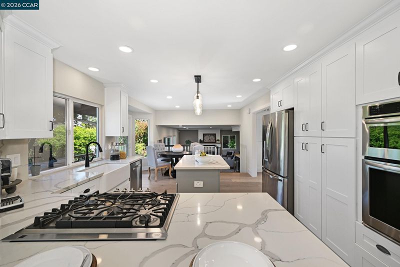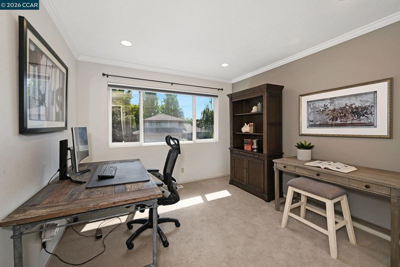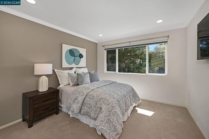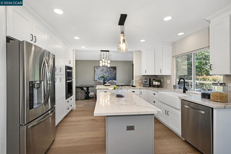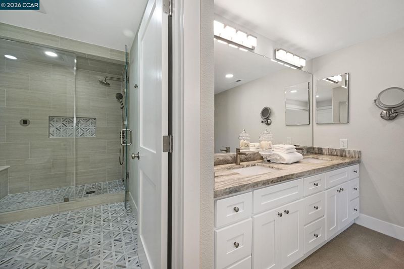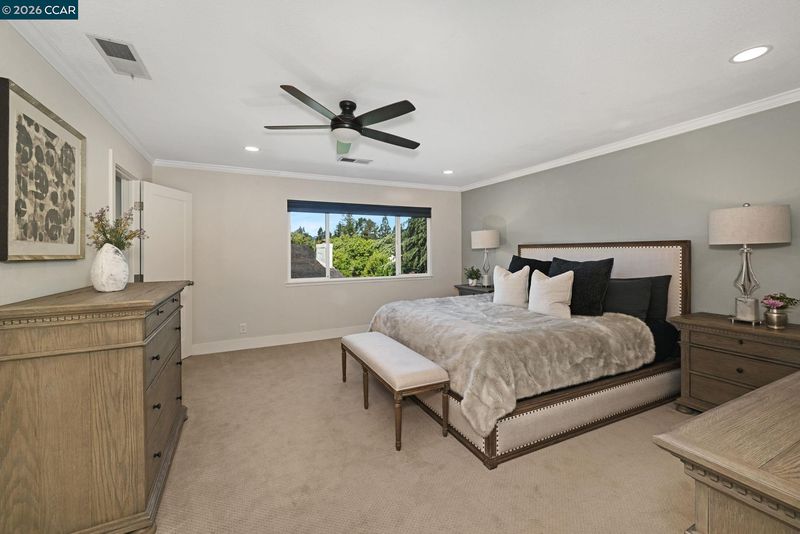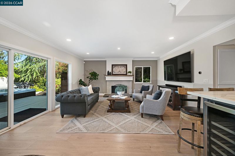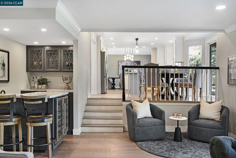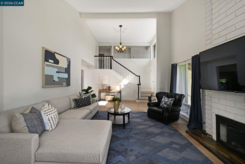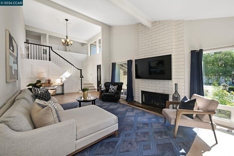Nestled within the prestigious gates of Crow Canyon Country Club, this distinguished east-facing residence presents an exceptional opportunity to enjoy life in one of Danville’s most desirable gated communities. Situated on a quiet court, this four-bedroom, three-bathroom home offers approximately 2,880 sq ft of refined living space enhanced by soaring vaulted ceilings, gorgeous wide plank white oak hardwood flooring, and thoughtful design throughout. The beautifully remodeled kitchen showcases white cabinetry, sleek quartz countertops, a gas cooktop, center island, and stainless steel appliances, flowing seamlessly into the expansive great room. Designed for effortless entertaining, this inviting space features a beautiful custom fireplace, generous bar area, and sliding doors that open directly to a private hot tub and manicured lawn. Hill views & sunsets are enjoyed from the backyard and the primary bedroom, where the spacious suite also includes a generous walk-in closet and a spa-like remodeled bathroom with heated tile floors and an impressive steam shower with bench. A convenient first-floor bedroom and full bathroom provide flexible living arrangements, complemented by a bonus room and additional storage on the second floor (bonus and storage room not included in sq footage). Residents enjoy access to six community pools, twenty-four-hour roving security and guard gate, and country club memberships available separately. A three-car garage, including space suitable for a golf cart, and a new roof installed in 2020 as well as a newer dual-zone furnace & water heater (2022) add lasting peace of mind. Award-winning SRVUSD schools, parks, shopping and fine dining are all within convenient reach. An exceptional setting to enjoy comfort, style, and everyday ease.
