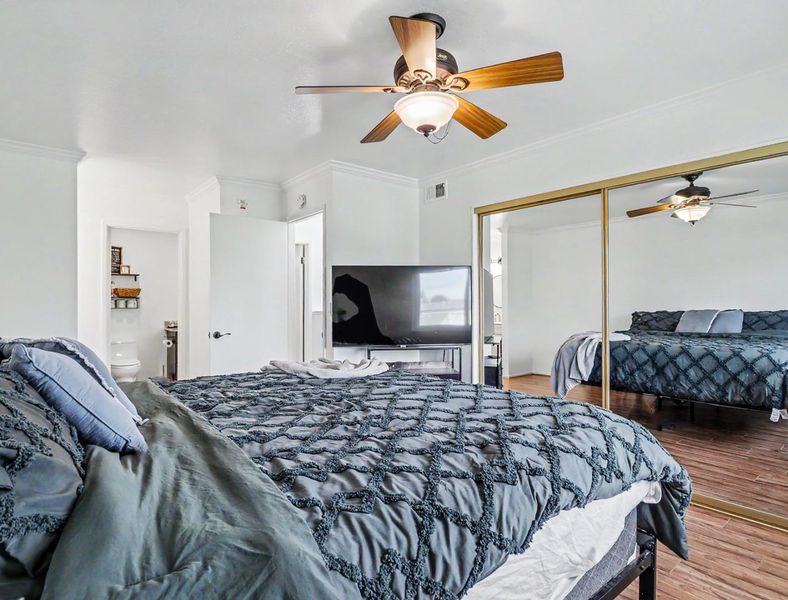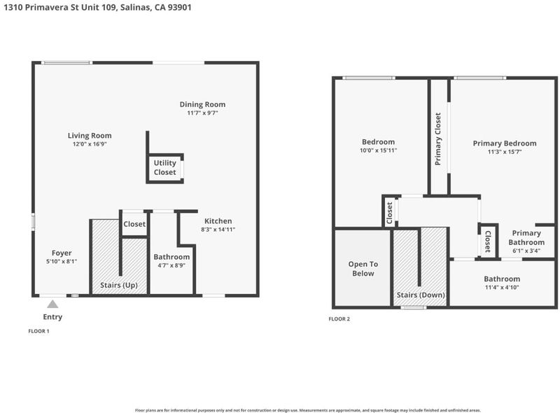 Located in South Salinas, this 1,275 sq ft two-story townhouse in Los Olivos Village offers 2 bedrooms and 1.5 bathrooms. Features include granite kitchen countertops with gas range, refrigerator, dishwasher, and microwave. Fresh interior paint throughout. Primary bedroom includes private vanity separate from shared bath. Laundry located in garage with 1-car parking. Situated on a 1,561 sq ft lot within Salinas City Elementary School District. Community amenities include pool, tennis courts, playground, and dog run.