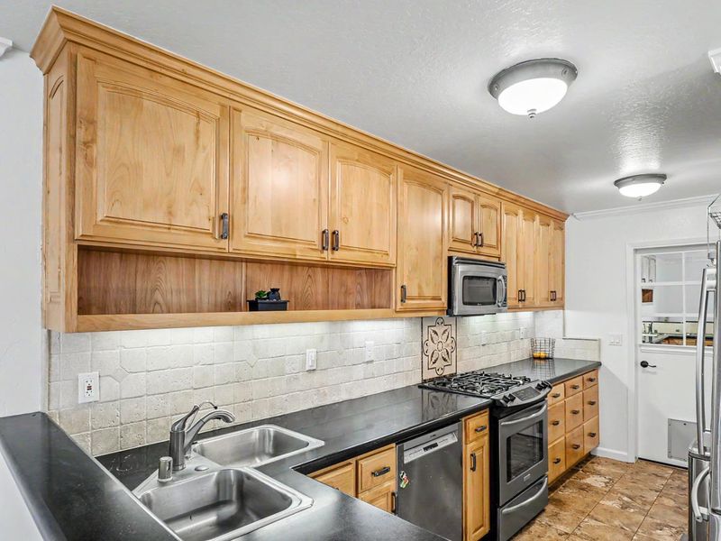 - Countertop - Granite, Dishwasher, Exhaust Fan, Garbage Disposal, Microwave, Oven Range - Gas, Refrigerator