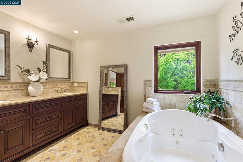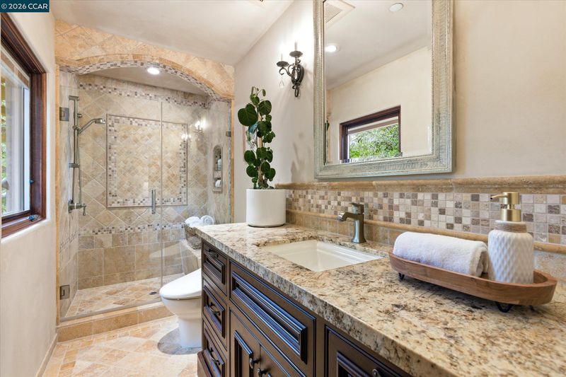 Set on a beautifully landscaped 0.5-acre lot, this spacious Santa Barbara-style home offers the perfect blend of elegance and everyday livability designed to grow with you through every stage of life. Whether you're raising a family, hosting loved ones, or enjoying a more relaxed pace, this home provides the space, comfort, and flexibility to truly live well. The first floor features a dedicated office and four well-appointed bedrooms, including two generously sized rooms with cozy window seats. A main-level ensuite offers the option for a primary suite ideal for those seeking the comfort and convenience of single-level living. A flexible fifth bedroom with a private entrance provides the perfect space for guests, a media room, or a home gym. Upstairs, a secluded primary retreat creates a peaceful haven, perfect for unwinding at the end of the day. At the heart of the home, the chef’s kitchen complete with two Sub-Zero refrigerators, a Wolf range, and double Miele ovens makes everything from casual mornings to elegant gatherings effortless. The expansive family room flows seamlessly to the outdoors, where a sparkling heated pool, hot tub, and pergola-covered BBQ area create the perfect setting for entertaining, quiet evenings, or simply enjoying the beauty of your surroundings. T