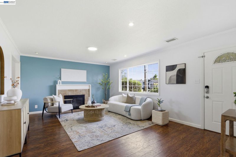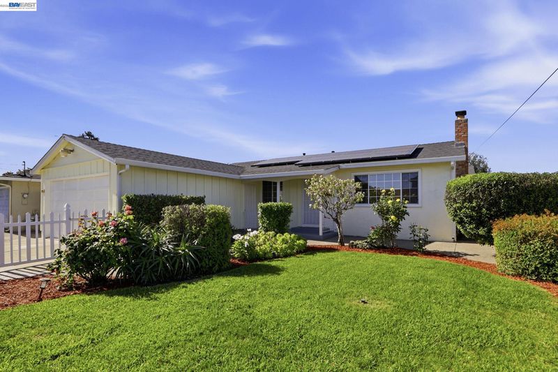 Charming Newark Home! This 3 bedroom, 2 bath home features approximately 1399 sqft of living space, with living room, eat-in kitchen, separate family room (Great possible 4th bedroom), enclosed sun room (not included in sqft), and relaxing mature landscape. Spacious eat-in kitchen with granite counters, gas range cooktop, and moveable island. Living room with lovely views of the front yard offers recessed lighting. Separate family room with closet and brick surround stove fireplace is a great option for 4th bedroom. This lovely home also features dual pane windows, solar panels, laminate floors, tile floors, central heating, and central air conditioning. Mature landscaping and fruit trees include roses, hibiscus, grapes, mandarin oranges, mint, and more. Easy access to highway 84 Dumbarton bridge & 880 Freeway. Conveniently located near dining, shopping, entertainment, Lakeshore park and lake as well as walking distance to Newark Community center and park. **Open house Saturday 4/18/26 & Sunday 4/19/26 1-4pm**