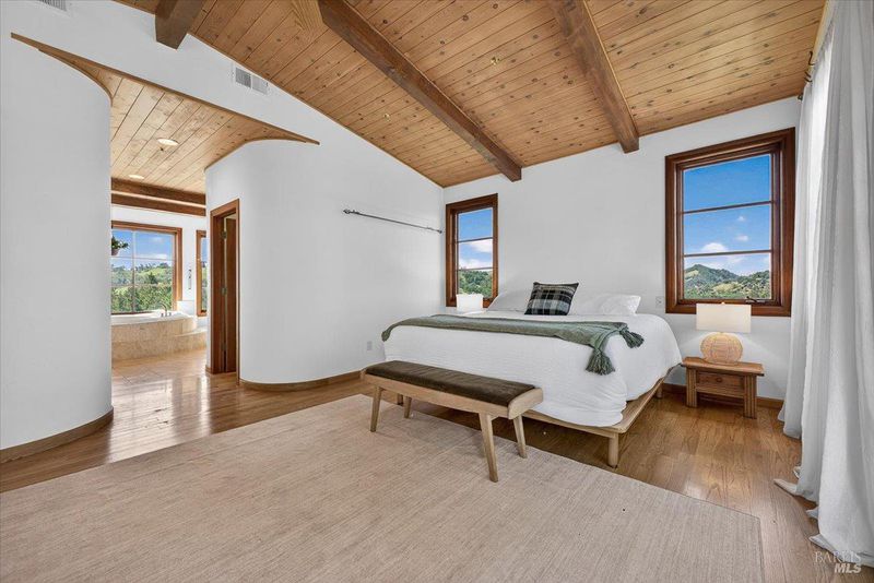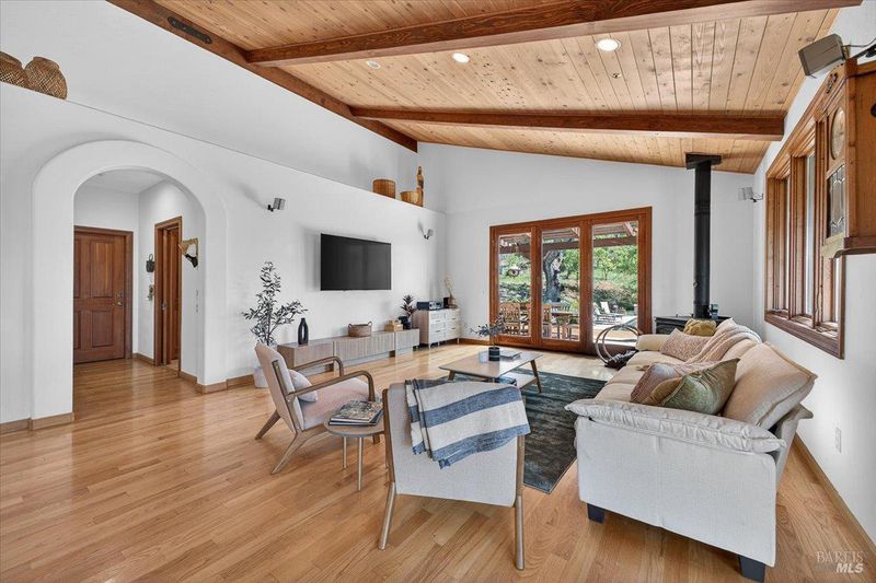 Cathedral/Vaulted, Deck Attached, Open Beam Ceiling, View