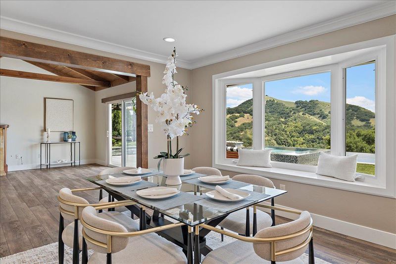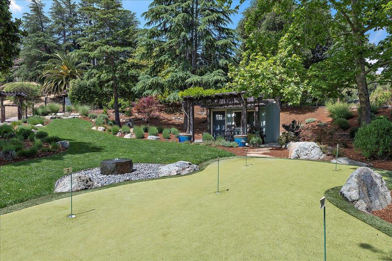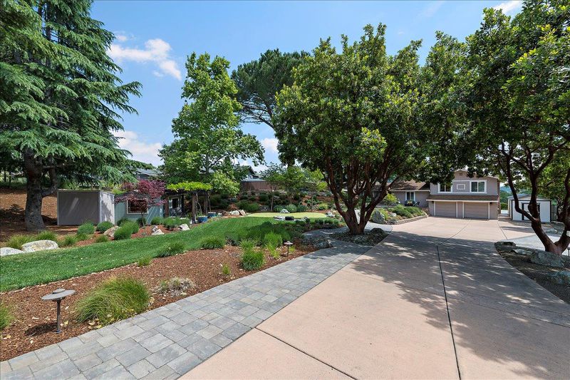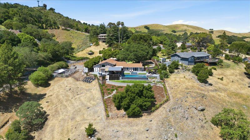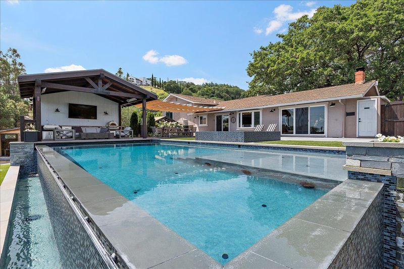 A property like this is almost impossible to find. Resort-style living with sweeping hill views, an infinity-edge pool, and multiple outdoor spaces designed for unforgettable entertaining & everyday living. This updated 4bd/3.5ba tri-level home blends comfort and style with LVP flooring, crown moulding, recessed lighting, open beam ceilings in the living room, and 2-fireplaces. The remodeled kitchen features quartz counters, S/S appliances, double ovens, gas cooktop, and a breakfast bar/island. The spacious primary suite offers a walk-in closet with professionally installed organizer and an updated bath with separate soaking tub and walk-in shower. Step outside to a true entertainers yard. Your own private retreat featuring: 2 golf tee boxes, putting green, outdoor kitchen complete with refrigerators, ice maker, BBQ, pizza oven, two pergolas, and a built-in fire pit. The infinity-edge pool with solar pool heating system and spa create a stunning focal point, while multiple seating areas are perfectly positioned to take in the sweeping hill views. Fully landscaped with garden area and chicken coop. Additional features include: dual pane windows, newer HVAC (~2 yrs), pool solar, reverse osmosis filter, Bluetooth-enabled attic fans, and a sauna. Opportunities like this are rare.