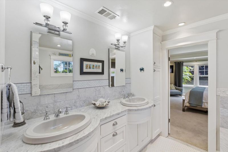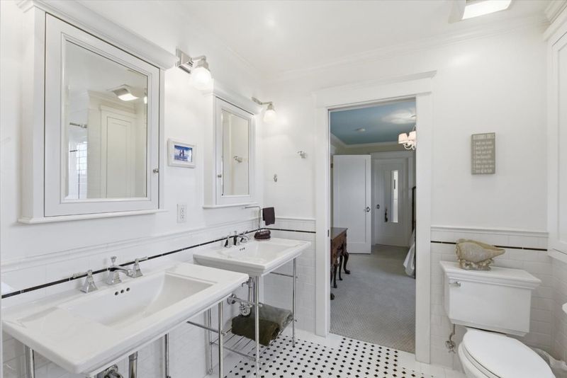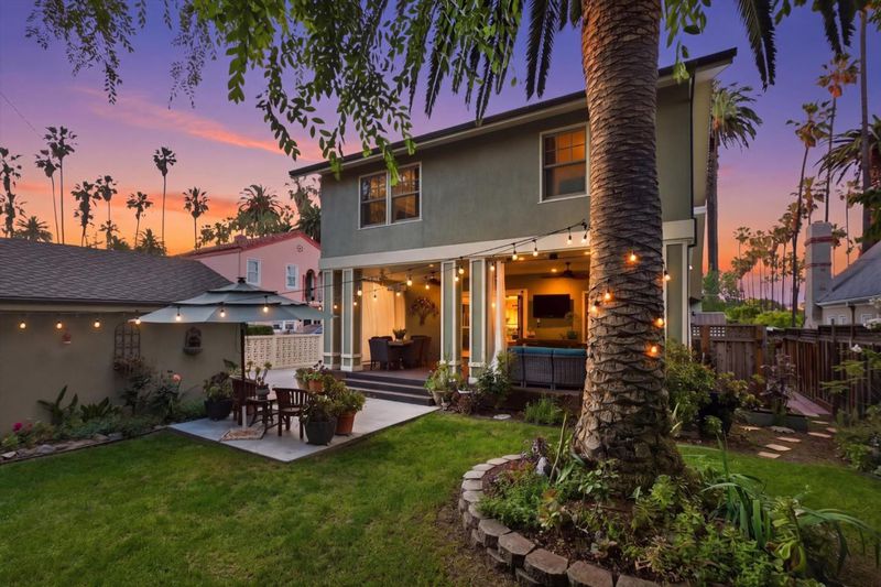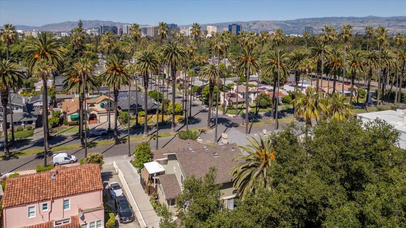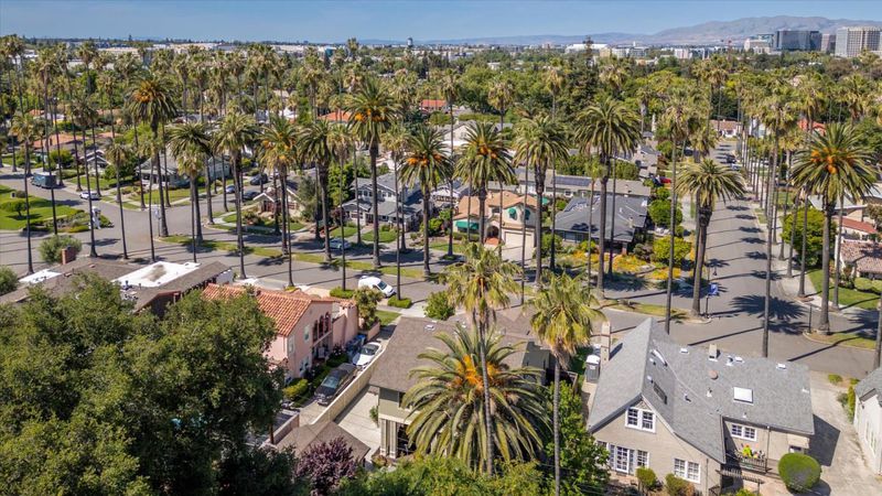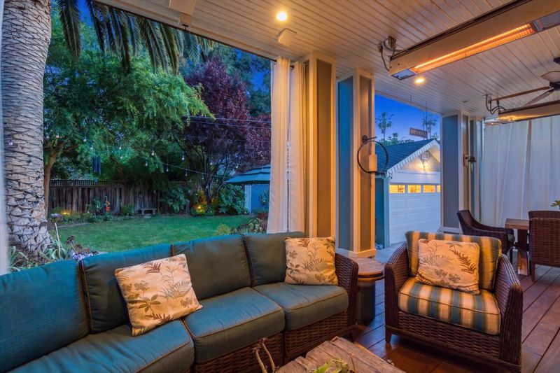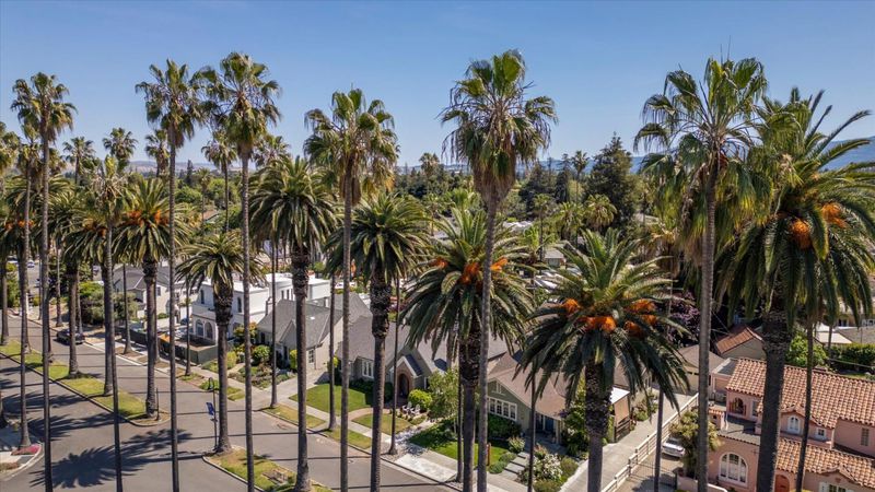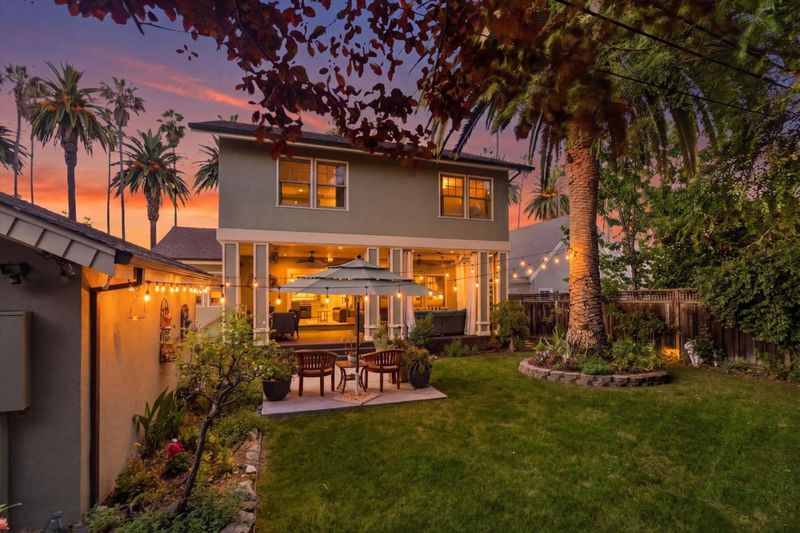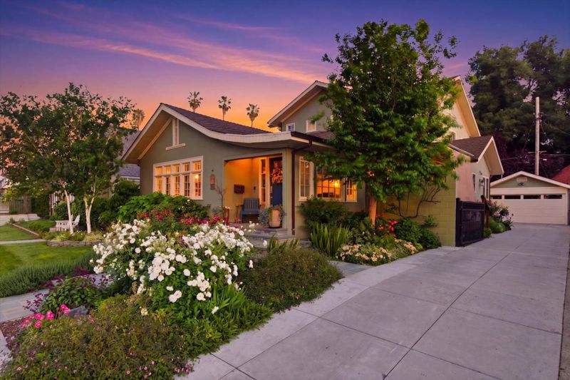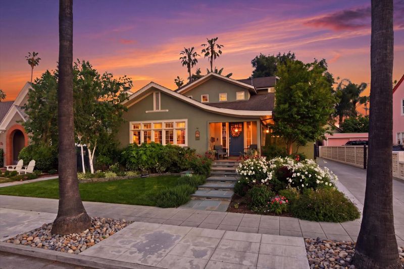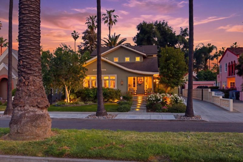 Situated in the heart of historic Palm Haven, San Jose's iconic 1913 residence park community in Willow Glen. This exceptional home overlooks the signature greenbelt framed by soaring heritage palms. Extensively updated while preserving its vintage character, the home features warm hardwood floors, custom solid wood doors, vintage hardware, and period-inspired tilework. A formal entry with mosaic tile leads to a grand dining room with French doors opening to a charming side deck. The living room showcases a classic tile fireplace, complemented by a private study and main-level bedroom with adjacent bath. The chefs kitchen with high-end Viking appliances, natural stone counters, and center island flows seamlessly into the family room and out to a remarkable covered deck with heaters, fans, sound system, and custom drapes; ideal for year-round entertaining. Upstairs offers spacious bedrooms including a serene primary suite. Finished basement with wine storage.