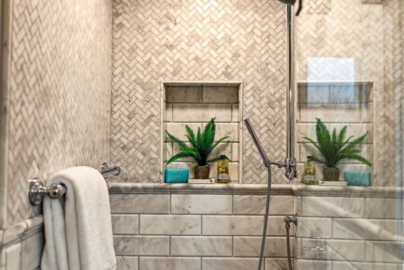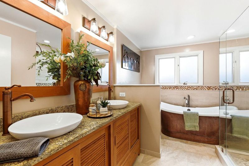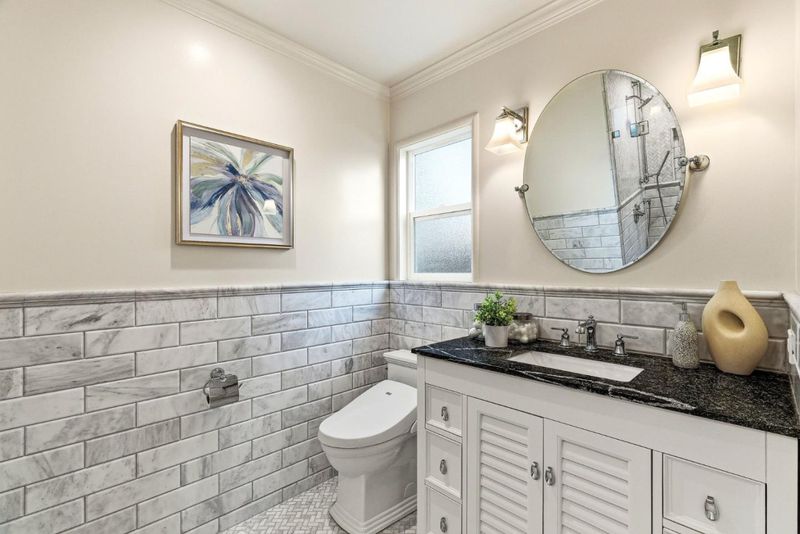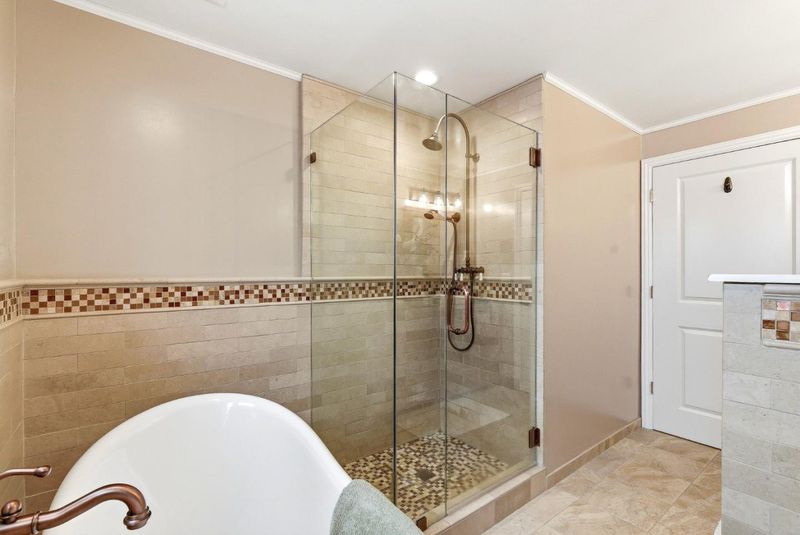 - Double Sinks, Dual Flush Toilet, Full on Ground Floor, Half on Ground Floor, Marble, Oversized Tub, Primary - Stall Shower(s), Solid Surface, Stall Shower - 2+, Updated Bath