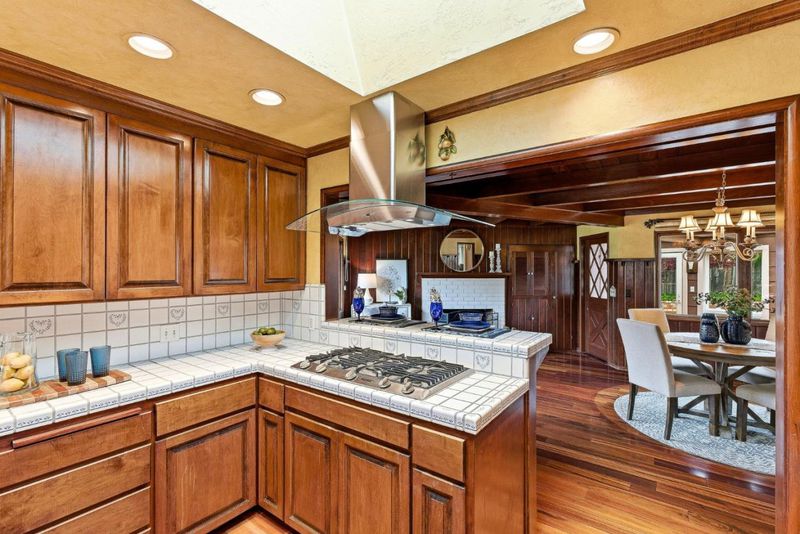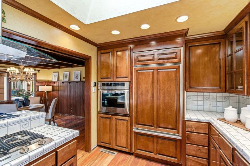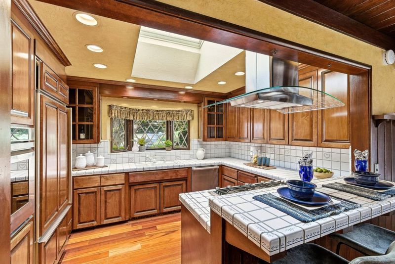 - Cooktop - Gas, Countertop - Tile, Dishwasher, Garbage Disposal, Hood Over Range, Oven - Built-In, Oven - Self Cleaning, Refrigerator
