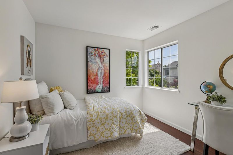 Welcome to this inviting 5-bedroom, 3.5-bathroom home featuring a highly desirable layout with a first-floor primary bedroom and a second primary bedroom that provides added flexibility for guests, extended family, or multigenerational living. The thoughtfully designed kitchen features granite countertops, a gas cooktop, pantry, oven range, and an eat-in area for casual dining. A separate dining area adjoining the living room creates an easy flow for both everyday living and entertaining. Additional highlights include hardwood flooring, central air conditioning, a new heat pump, a brand new roof, vaulted ceilings, a charming garden window, walk-in closets, and an attached two-car garage with laundry facilities including washer and dryer. Ideally situated in a sought-after Sunnyvale location, this home is across from a park and within walking distance to Downtown Sunnyvale, shopping, dining, and major tech employers. The backyard offers a lovely setting for entertaining, complemented by garden accents and trees. Assigned schools include Cumberland Elementary, Sunnyvale Middle School, and Homestead High School, buyer to verify. Come experience all this home has to offer and make it your new home today.