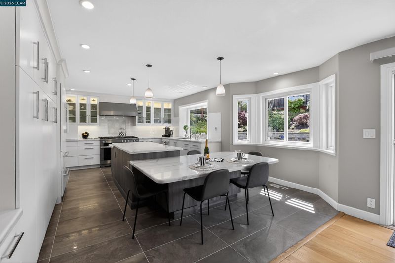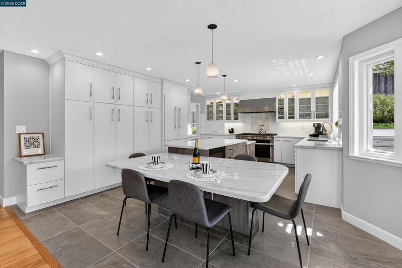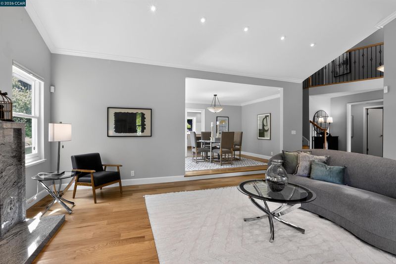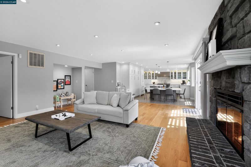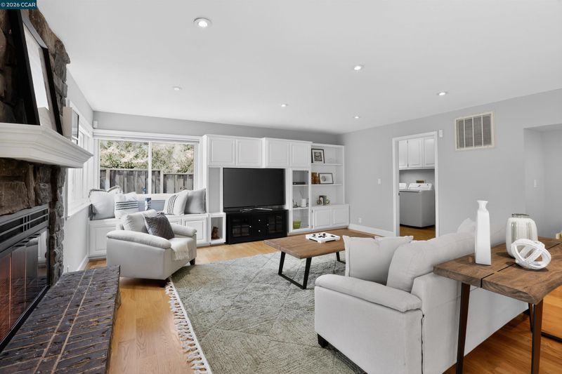 Beautifully updated home located in the popular Moraga Place neighborhood on a quiet street. Dream kitchen w/ stainless steel Miele appliances, a 6-burner gas cooktop & griddle, double oven w/ dedicated microwave, plate warmer, & stainless-steel hood. Spacious island w/ seating area, custom cabinetry w/ soft-close doors & drawers, tile backsplash, & quartzite countertops. The kitchen opens to a generously sized family room w/ vaulted ceilings, a fireplace, & access to a beautiful outdoor living space featuring an outdoor kitchen, fire pit, outdoor speakers & lawn play area. Inside laundry room. Recessed lighting throughout & hardwood floors. Perfect for entertaining. Expanded primary bedroom w/ vaulted ceilings. Luxurious primary bathroom with tasteful use of tile and color, separate shower, freestanding tub, & heated floors. Light-filled living room w/ fireplace, & vaulted ceilings. Formal dining room. Perfect for entertaining guests. One bedroom & a full bathroom on the first floor. Central AC